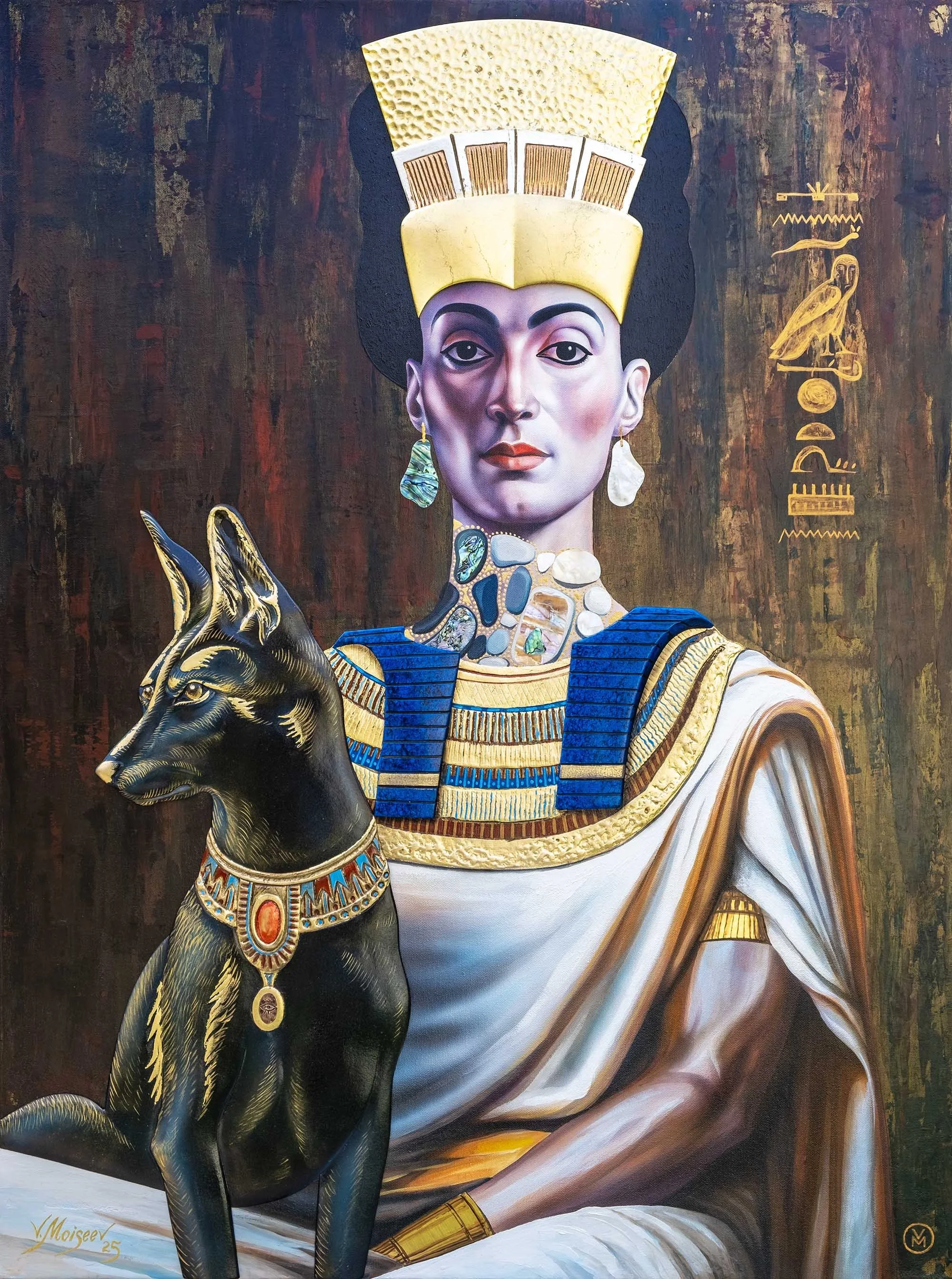 Regal stillness and the guardian hound become symbols of protection, lineage and quiet authority, held within a luminous field of power and mystery.